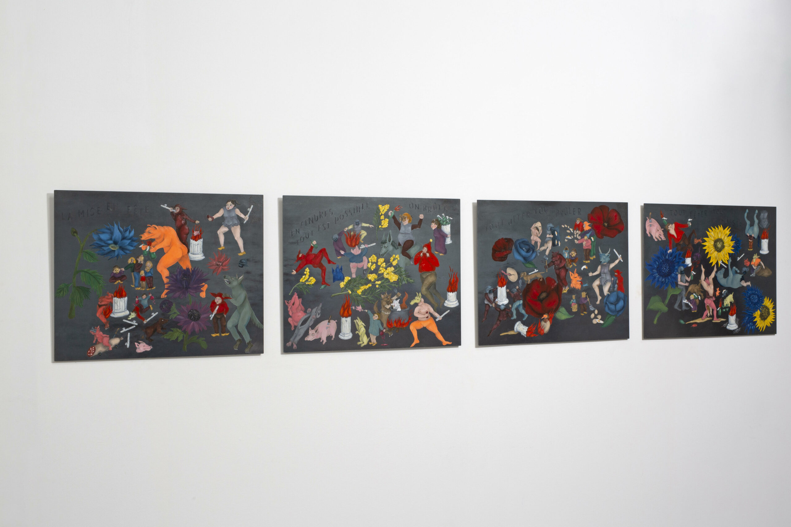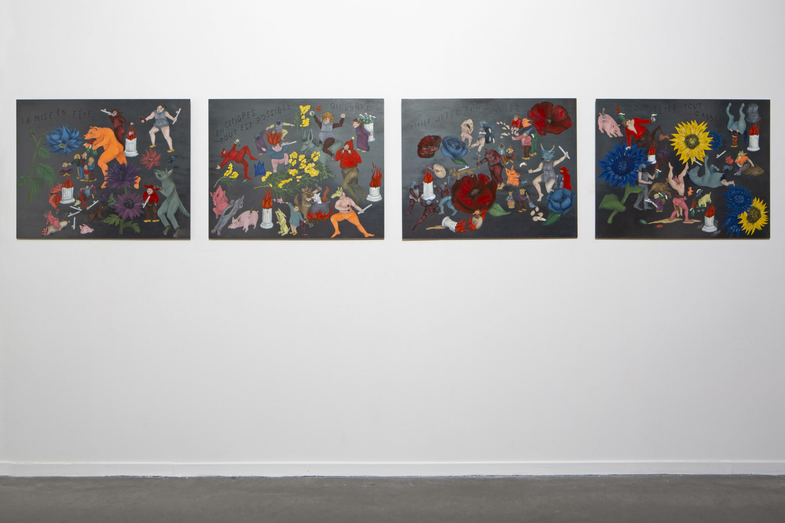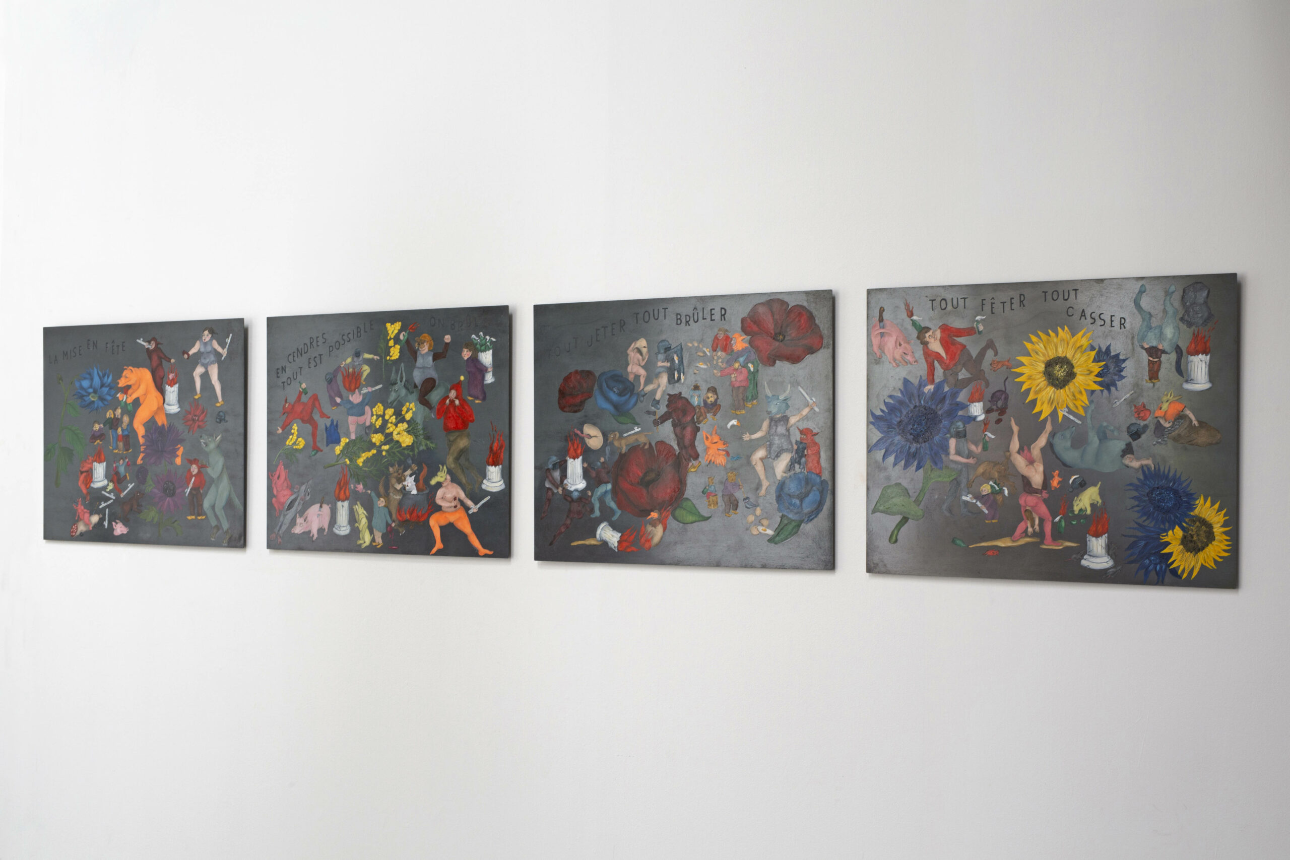 Comme son étymologie le suggère j’ai assimilé la révolution à un phénomène cyclique, un peu comme celui des quatre saisons. À l’image des fêtes carnavalesques du Moyen-Âge, aux portes de l’embrasement des festivités, se situe la révolte :