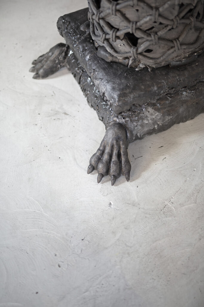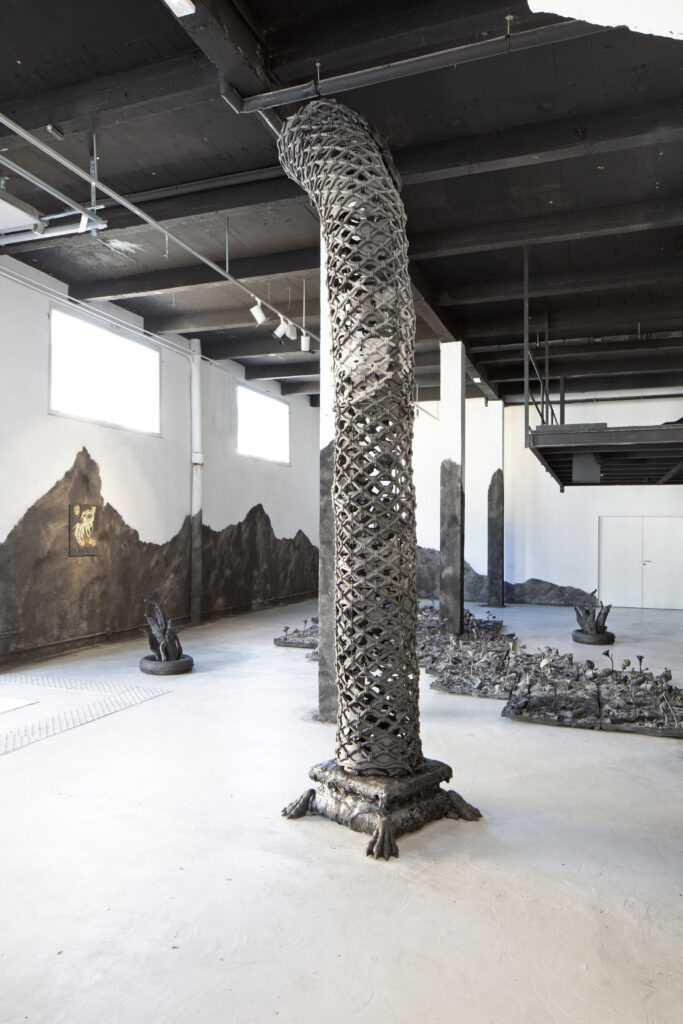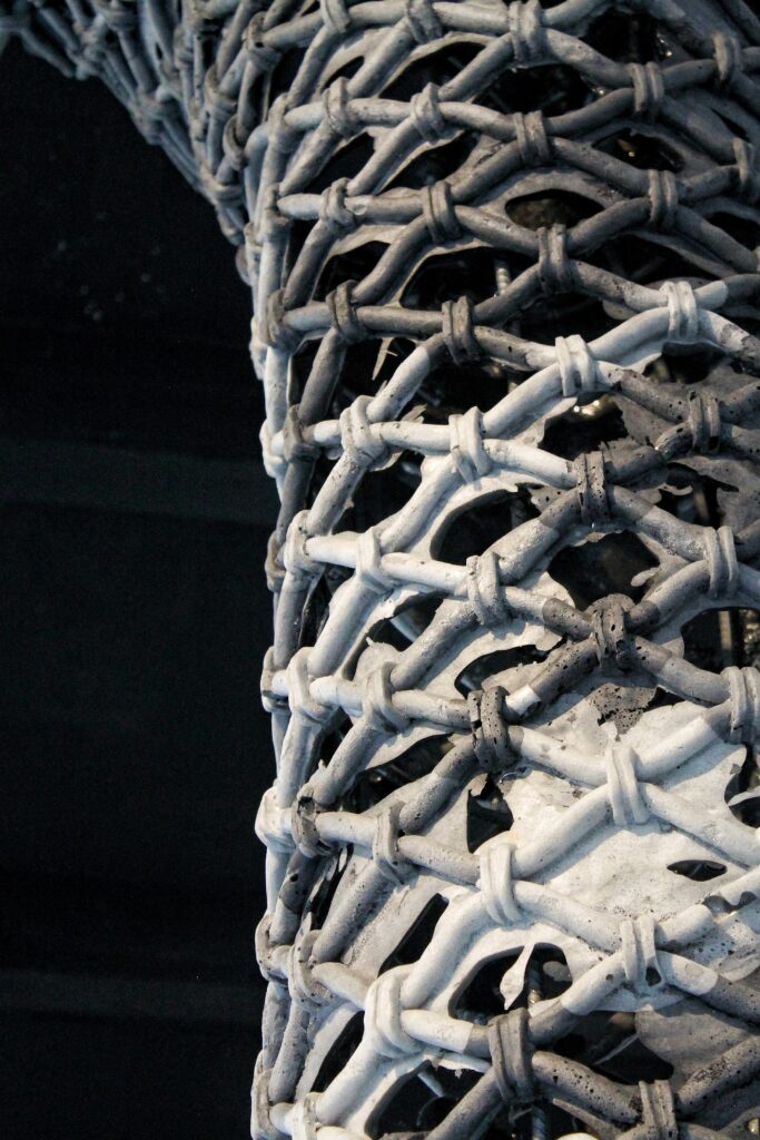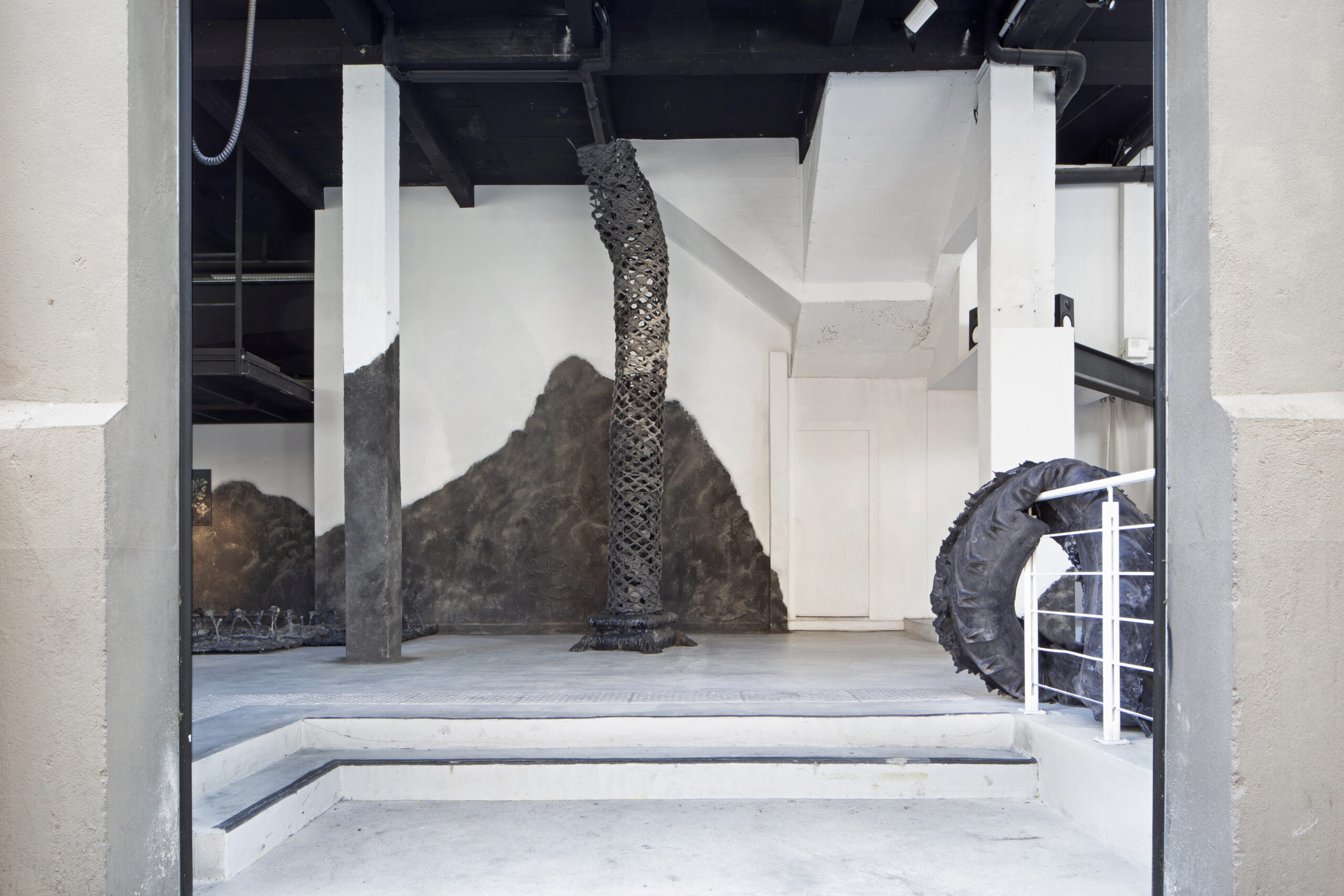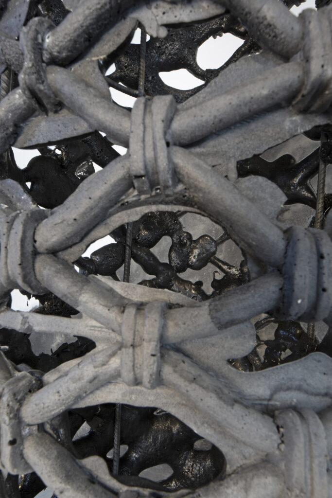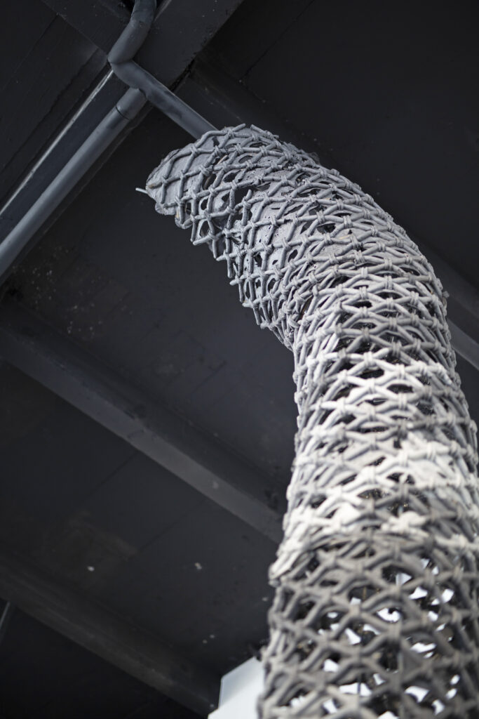Faire Rideau « Faire rideau » – 2024 – 460 x 90 cm Mousse polyuréthane molle , fer à béton, béton, polystyrène Oeuvre soutenue par Zoo Galerie et Volotéa – Crédit Gregory Valton